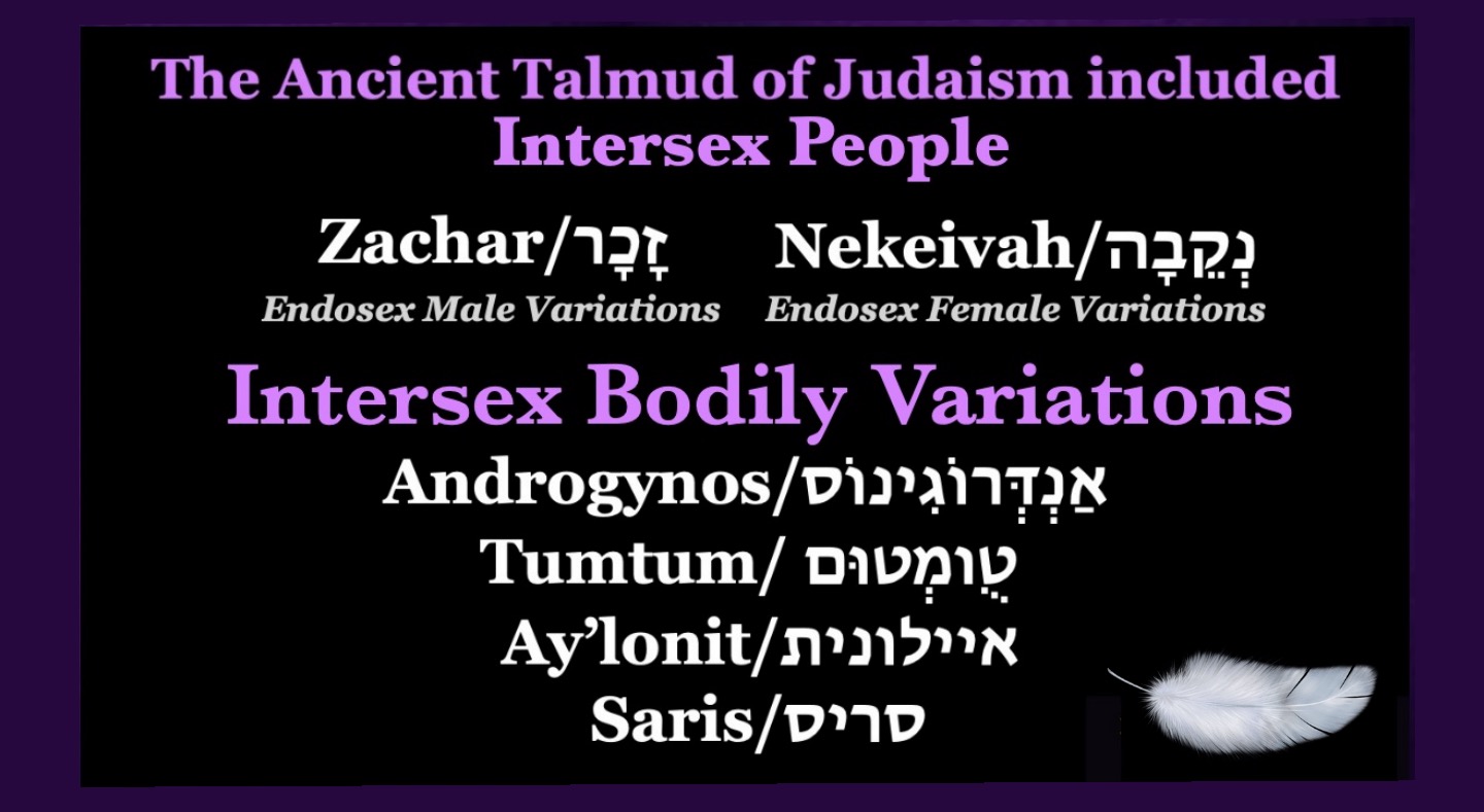 Studying Jewish and Christian biblical texts has shown that intersex visibility and acknowledgment of our existence might have been stronger in ancient times than today. Jewish law, or halachah, recognizes sex and gender diversity and has done so through Jewish history. These laws not only show us that more than men/males and woman/females existed but how intersex children should honor our parents no different than endosex boys or girls, as this Midrash states: