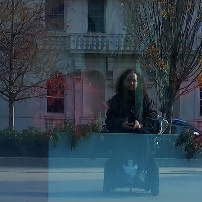 A reflection in my hospital’s window of a: